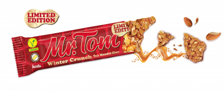 Im Winter gibt’s was Neues auf die Nüsse! Ab sofort versüßt dir die Limited Edition Mr. Tom Winter Crunch die kalte Jahreszeit: knackige Erdnüsse und süße Mandeln, umhüllt von unwiderstehlichem Karamell und mit einem winterlichen Hauch Zimt. Jetzt probieren!